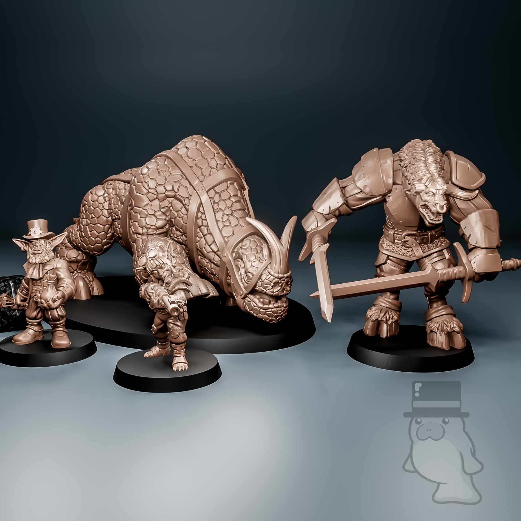 Models come as pictured on 25mm, 32mm and 105x70mm bases.