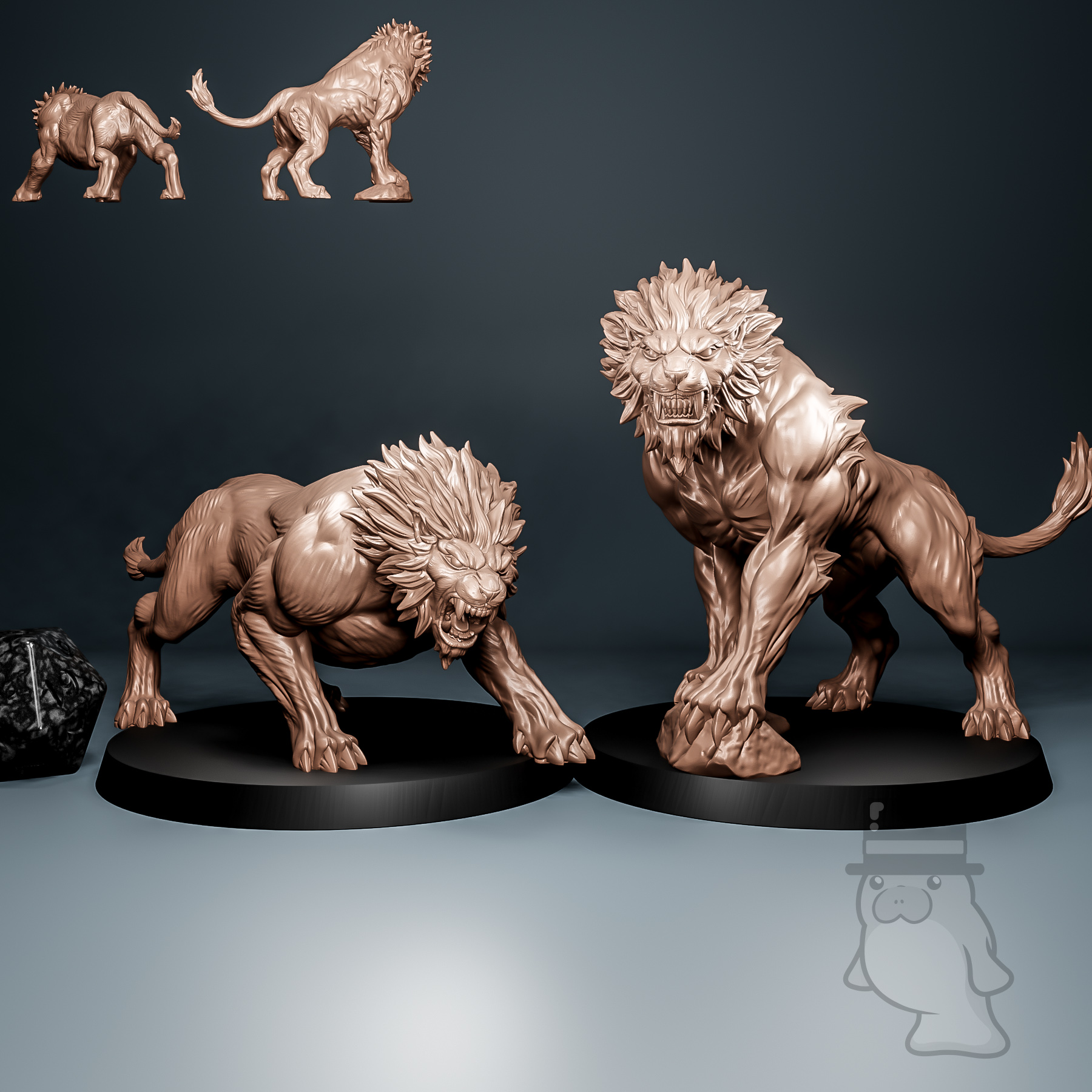 2x Guardian Lion Statues (Plastic (FDM))
