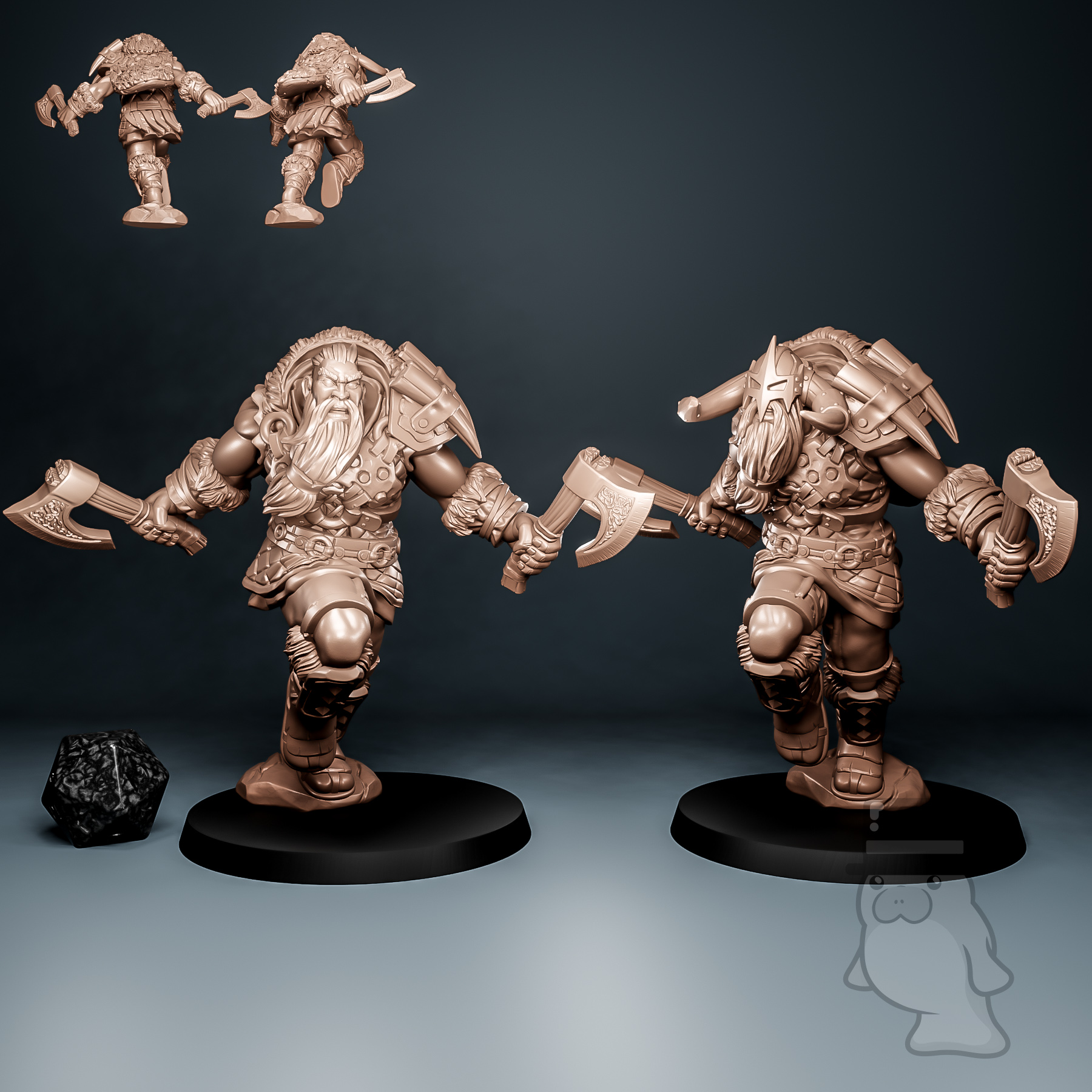 Models are pictured on and come with a 50mm base.