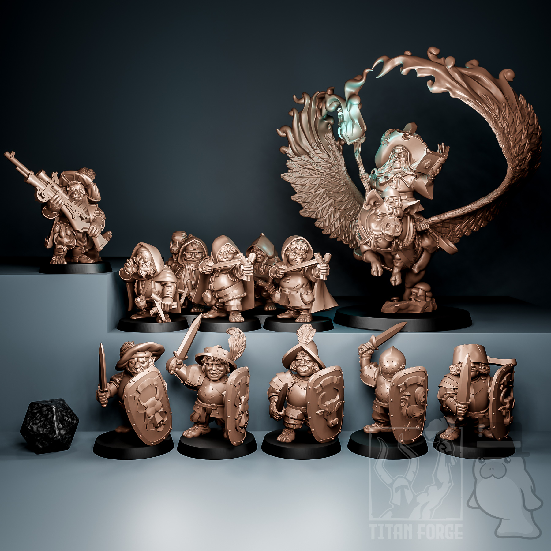 1x Halfling Mage on Winged Pig (50mm base)