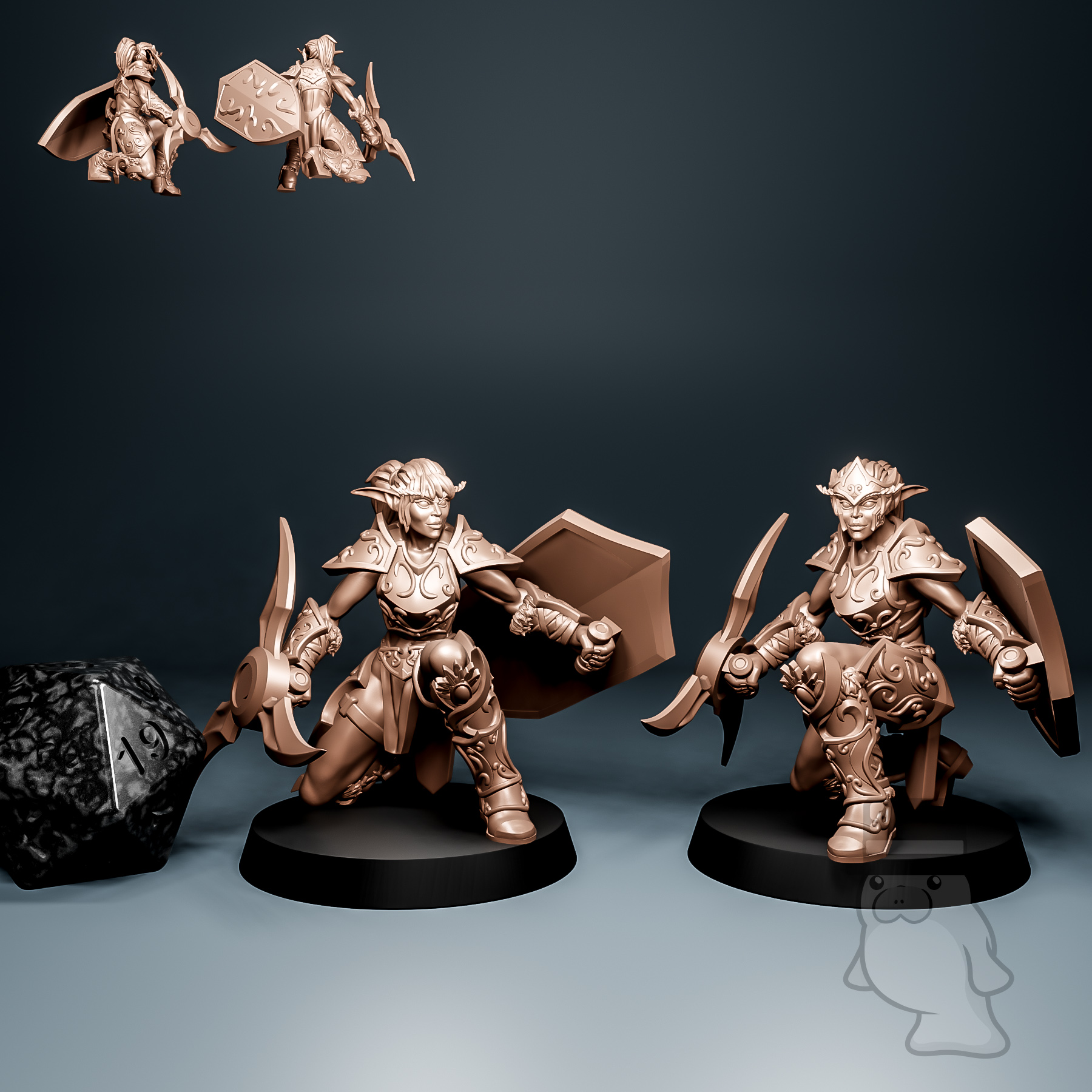 Models are pictured on and come with a 25mm base.