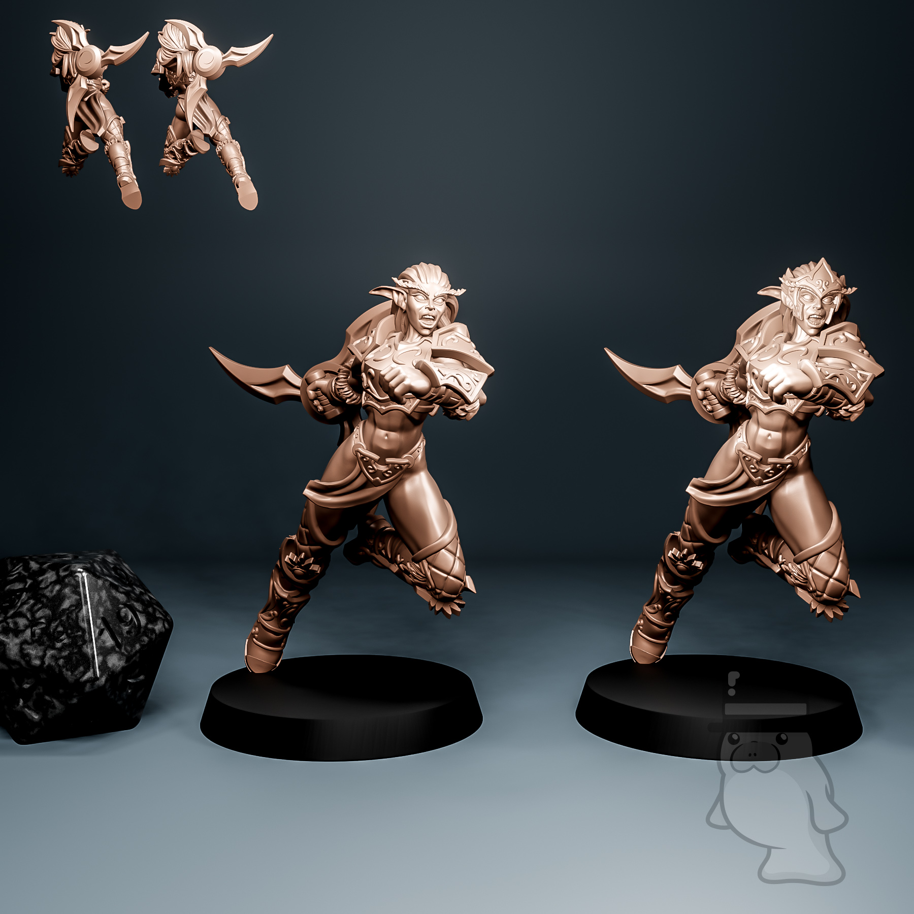 Models are pictured on and come with a 25mm base.