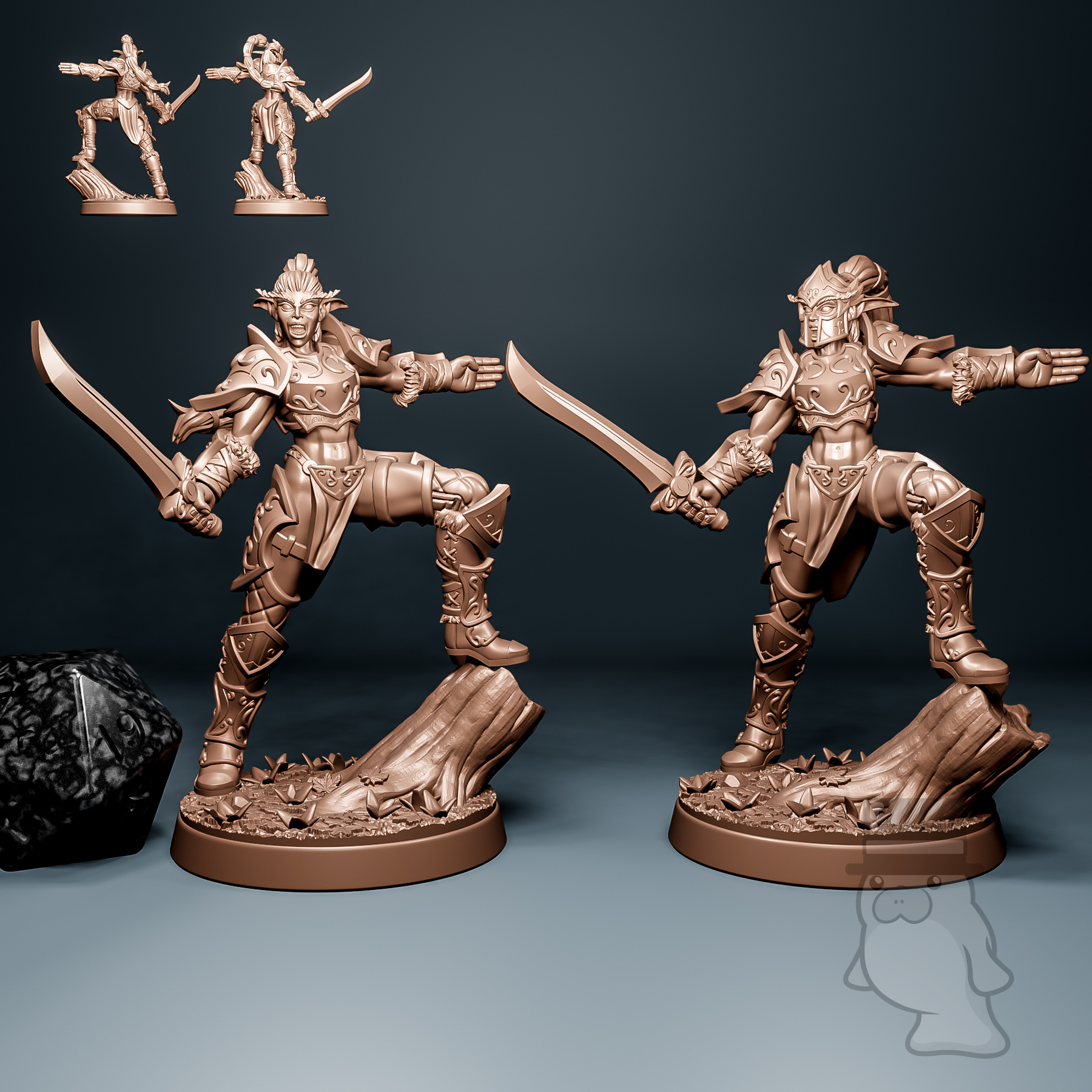 Models are pictured on and come with a 25mm base.