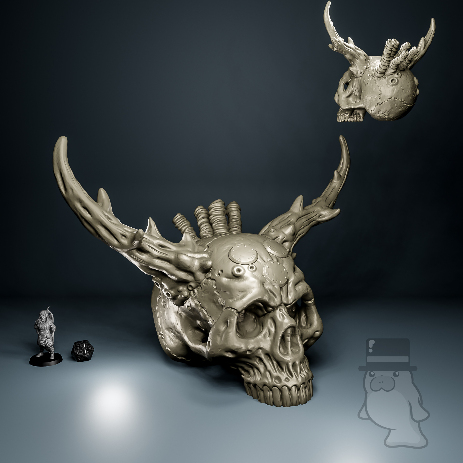 Grey miniature on a 25mm base is shown to assist with scale.